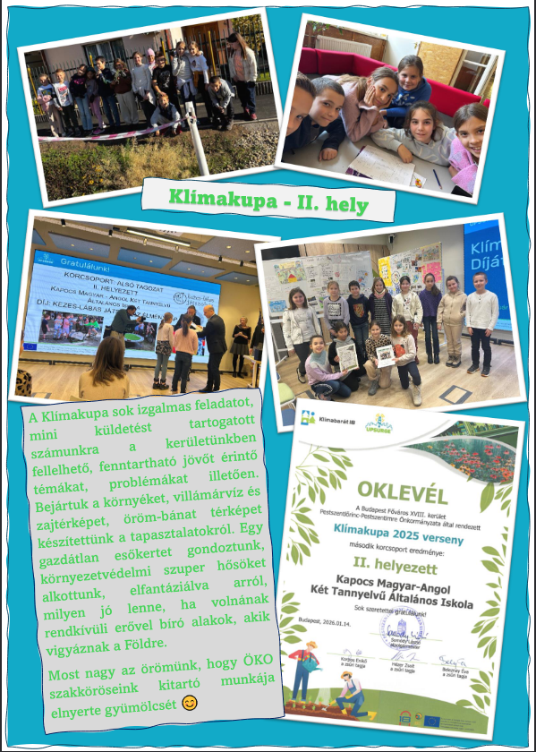 Tanulóink sikerei a Diákolimpián A kerületi úszóversenyen tanulónk az alábbi eredményeket érték el: Hajdu István – 50 méter mell I. hely 50 méter gyors II. hely fiú váltó (Cesaro Matteo, Daróci Ádám, Daróci Máté, Mezei Ervin) – I. hely Daróci Máté – 50 méter pillangó II. hely 50 méter mell II. hely Daróci Ádám –…