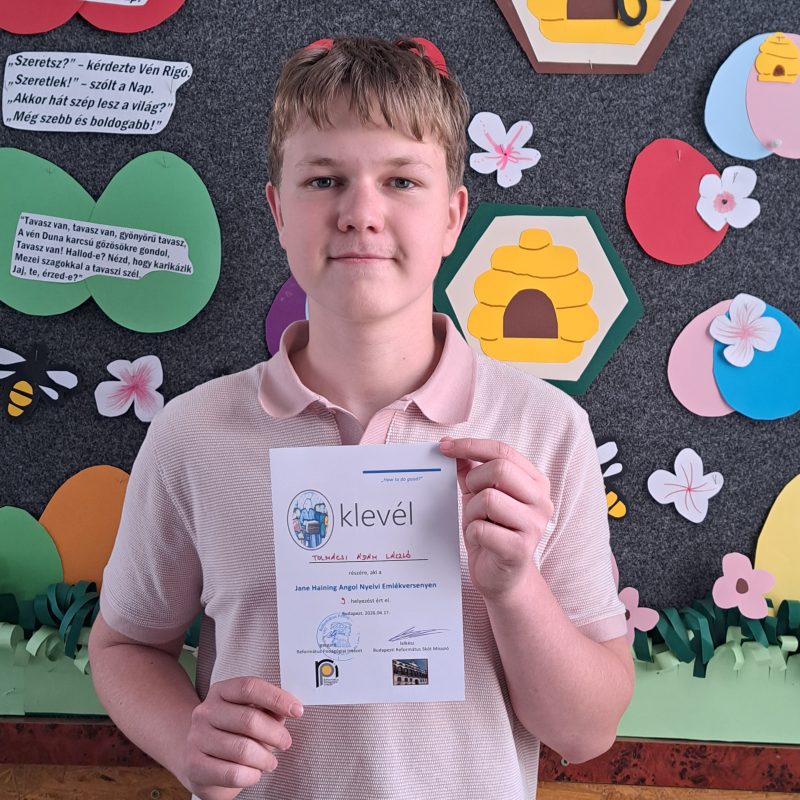 Angol nyelvű vers- és prózamondó verseny Tímár Éva emlékére Kovácsik Dorottya, 6. osztály – arany minősítés Dabóczi Emma Laura, 4. osztály – ezüst minősítés Sowa Zsófia, 5. osztály – bronz minősítés